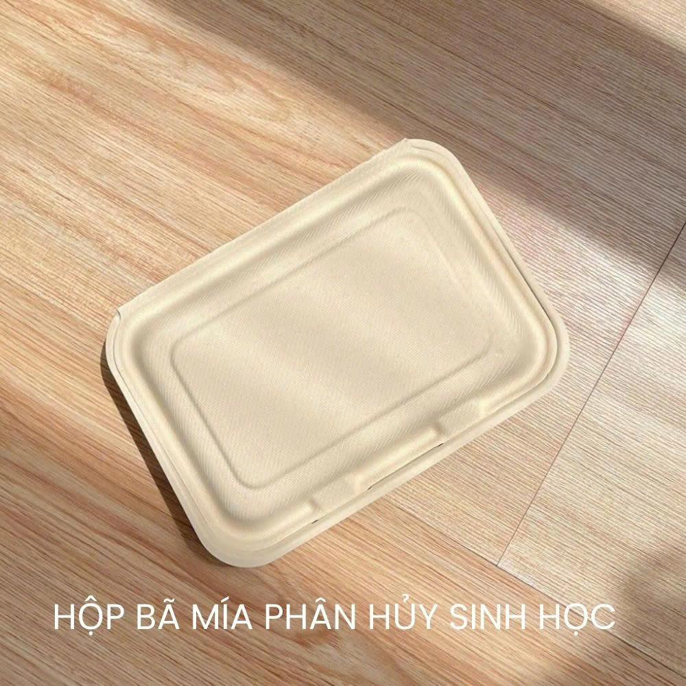 - Hộp bã mía: Phân hủy sinh học trong 6 – 12 tuần, không gây ô nhiễm môi trường.