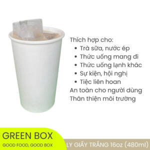 Tại Chiếc Hộp Xanh, chúng tôi cung cấp ly giấy trắng 270ml – 650ml, ống hút giấy phân hủy sinh học và nắp ly đạt chuẩn quốc tế.