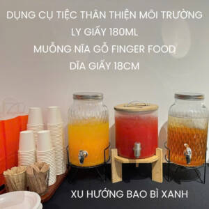 xu hướng bao bì xanh, ly giấy 180ml, muỗng gỗ sự kiện, bao bì sự kiện xanh, combo ly dĩa muỗng gỗ, finger food, teabreak chuyên nghiệp, dụng cụ tiệc thân thiện môi trường