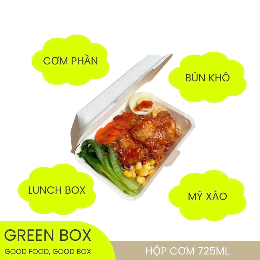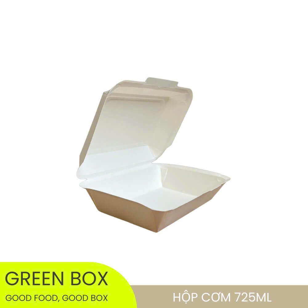 Hộp giấy trắng chữ nhật 725ml là dòng hộp đựng cơm cao cấp của Green Box, được nhập khẩu trực tiếp từ nhà sản xuất uy tín tại Thái Lan, đáp ứng đầy đủ các tiêu chuẩn an toàn thực phẩm quốc tế. Sản phẩm được thiết kế tối giản, sang trọng, phù hợp cho các mô hình quán cơm phần, cơm chay, cơm healthy, lunch box và dịch vụ take away – giao hàng tận nơi.